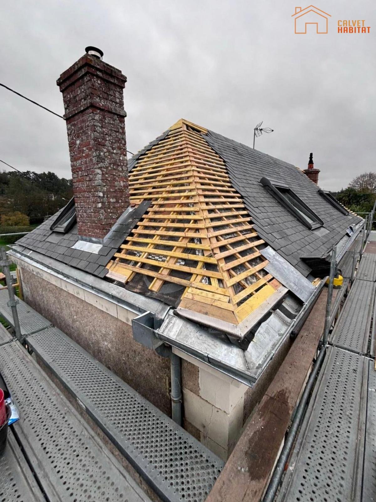 Les travaux sur toiture nécessitent une approche sécurité particulière. Calvet Habitat dispose de tous les équipements et met en place le protocole nécessaire. N’intervenez jamais vous-même.